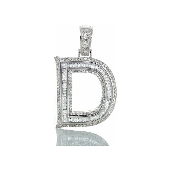 0.75ctw Initial " D " Baguette Centner Round Diamond Edges 10k White Gold