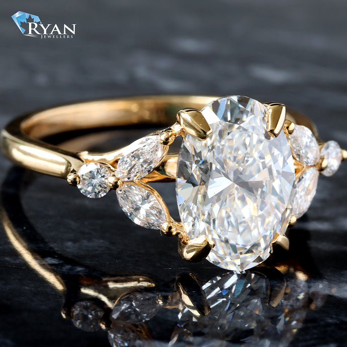 2.81ctw Oval Solitaire with Marquise and Round Diamonds Floral Design Shoulders
