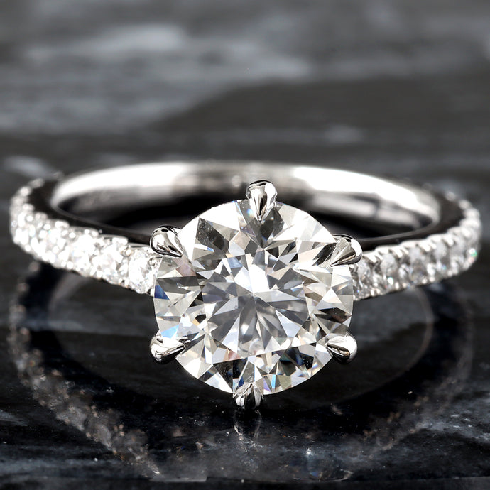 3.44ctw Round Solitaire Pave Shoulders and Hidden Halo Ring