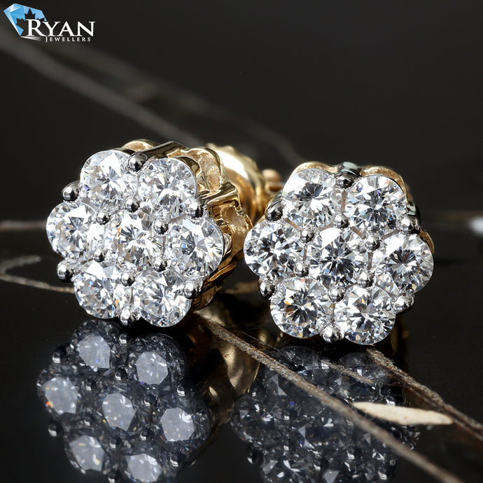 LAB EARRING GY 14K 1.00CTW FLOWER CLUSTER STUD SEVEN STONE