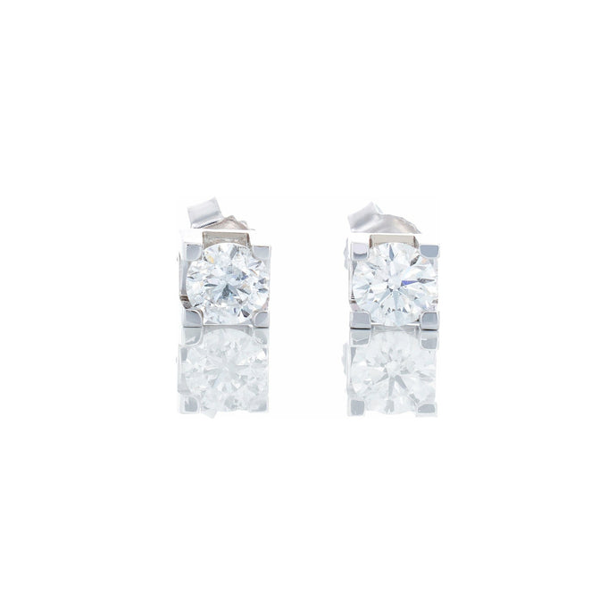 0.50ctw Round Brilliant Solitaire Studs Square 4 Claw Block Setting 14k White Gold