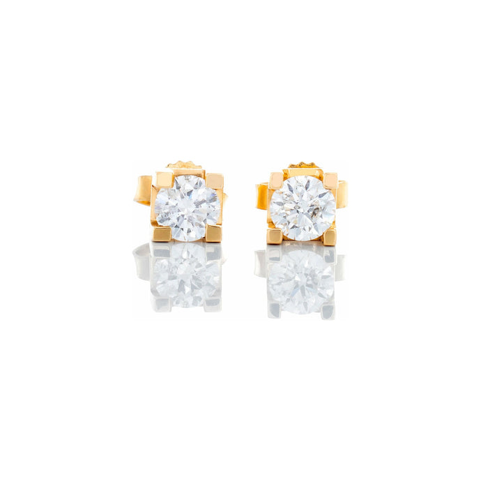 0.50ctw Round Brilliant Solitaire Studs Square 4 Claw Block Setting 14k Gold