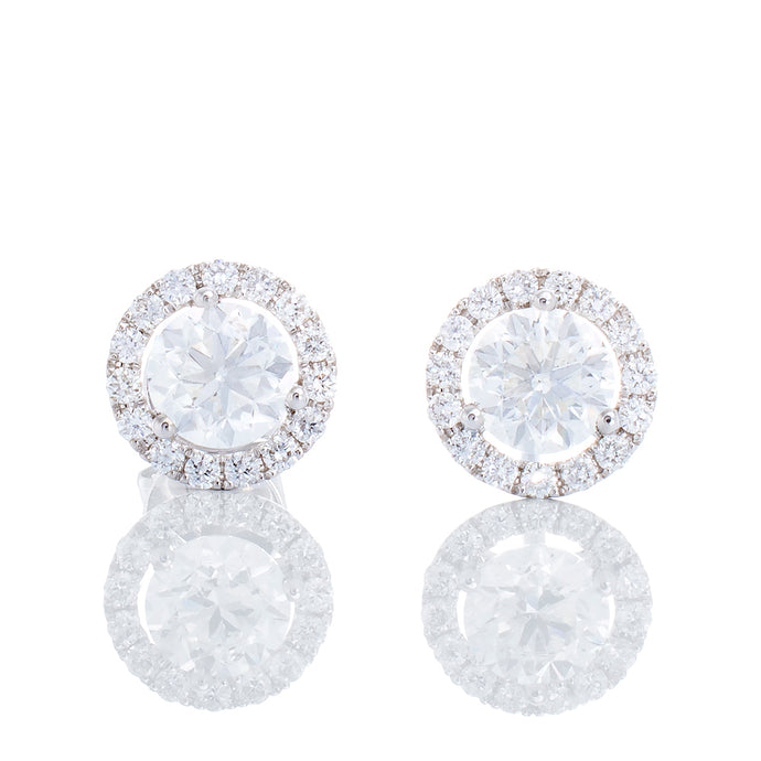 0.84ctw Three Prong Martine Set Diamond Solitaire Studs with Halo 18k White Gold