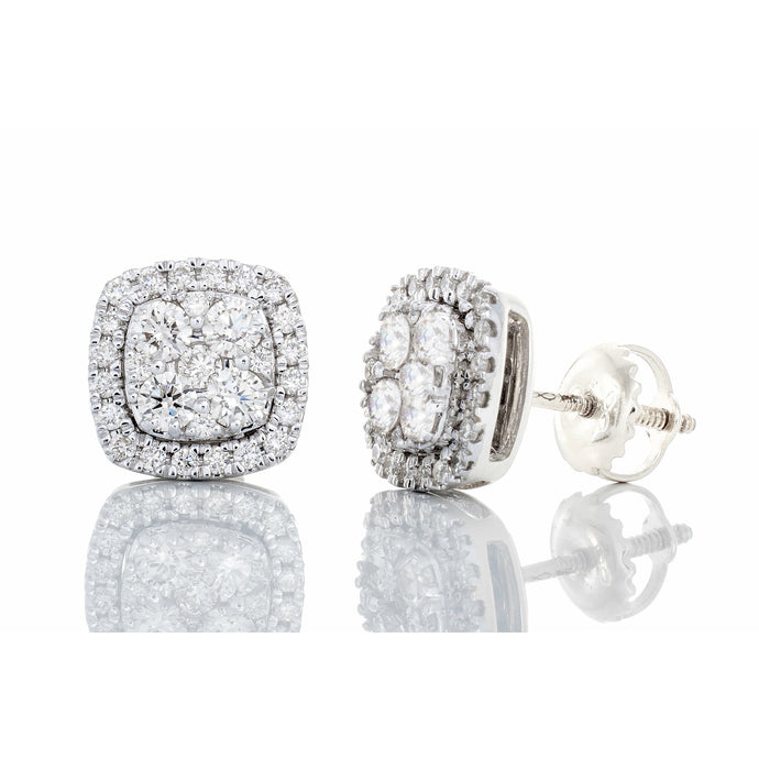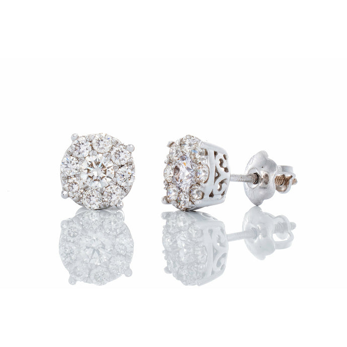 1.00ctw Round Imperial Cluster Studs 14k White Gold