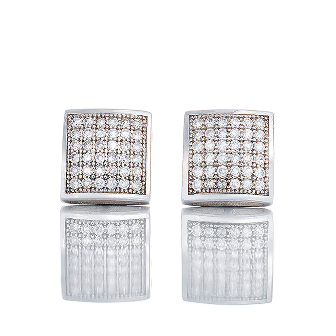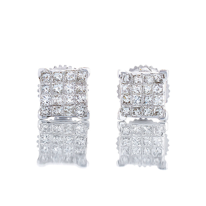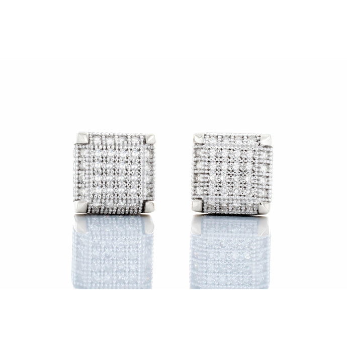 0.33ctw 3D Micro Pave Square Diamond Studs 10kt White Gold