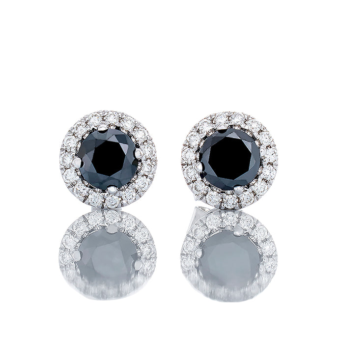 1.15ctw Black Diamond Solitaire with Diamond Halo 18k White Gold