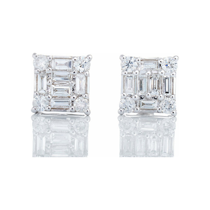 0.50ctw Baguette & Round Square Diamond Studs 10kt White Gold