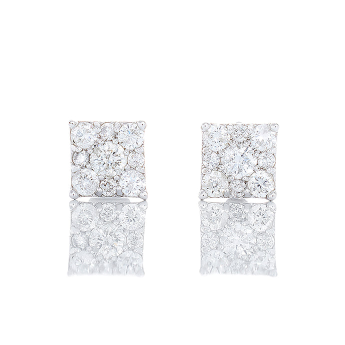 0.40ctw Square Imperial Cluster Diamond Studs 14k White Gold