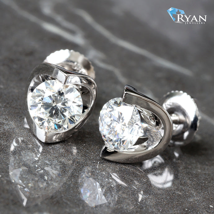 1.40ctw Lab Created Diamond Studs In Crescent Moon Setting