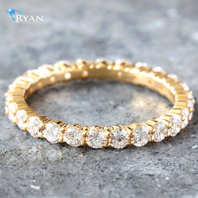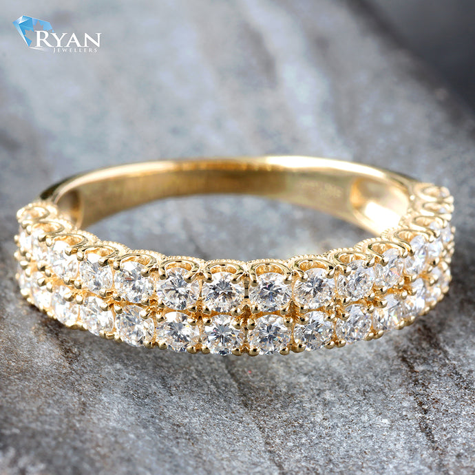 1 Carat Total Lab Grown Diamond Two Row Prong Setting Yellow Gold Band