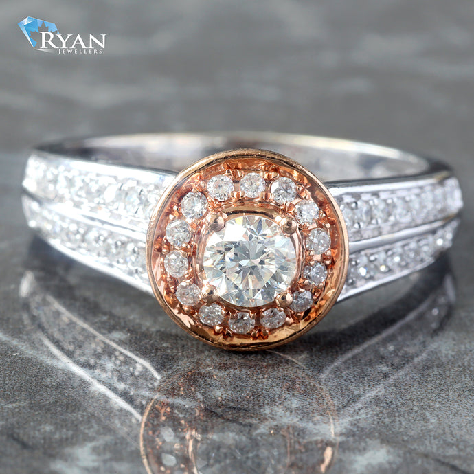 RING GWR 14KT 0.72CTW DIAMOND ROSE WHITE PAVE HALO DESIGN