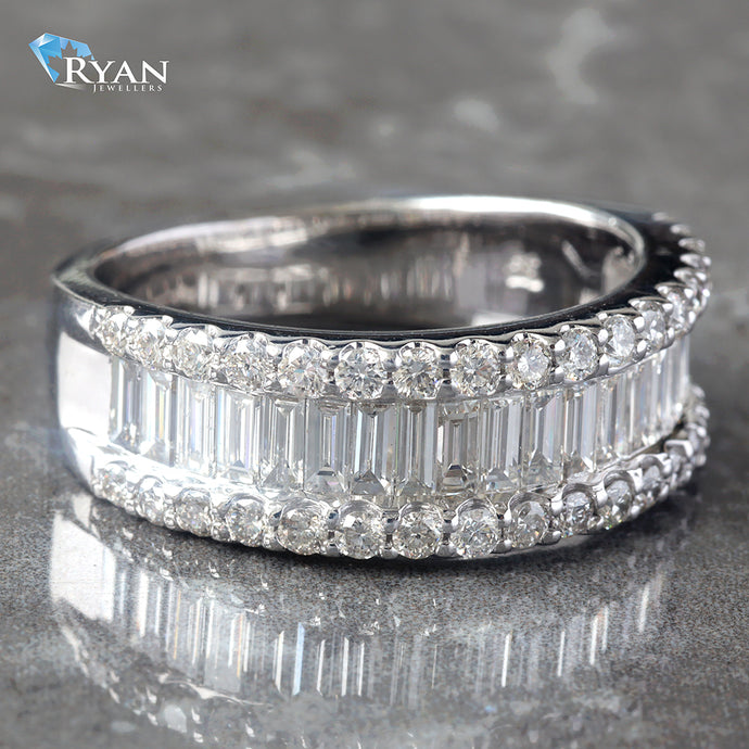 RING GW 14KT 1.40CTW THREE ROW BAGUETTE AND SHARED PRONG DIAMOND BAND