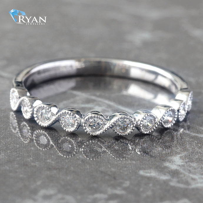 RING GW 18K 0.23CTW BEADED BEZEL SET INFINITY DESIGNED BAND
