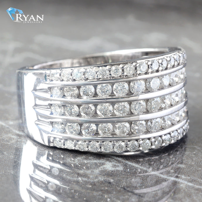 RING GW 10K 2.00CTW THREE ROW CHANNEL SET TWO TOW PAVE SET 5 ROW WIDE DIAMOND BAND