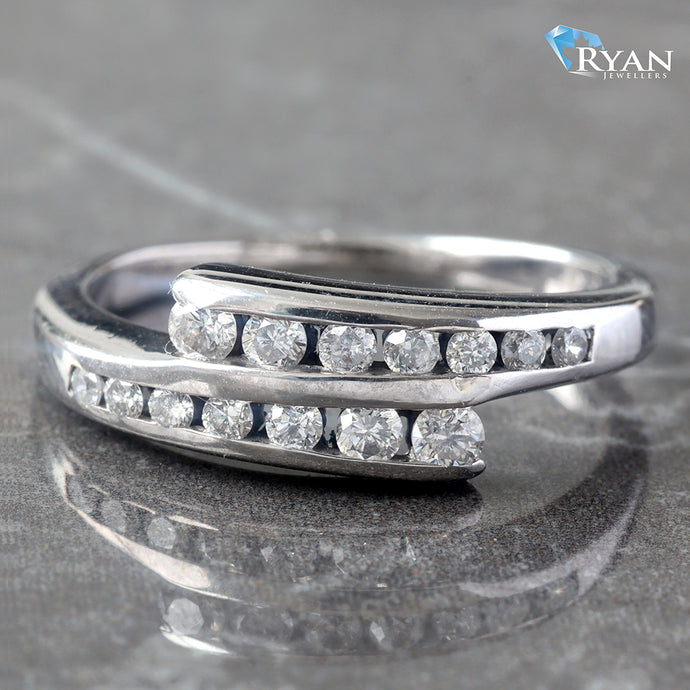 RING GW 14K 0.35CTW THREE ROW CROSS OVER TWO ROWS PAVE ONE ROW HIGH POLISHED