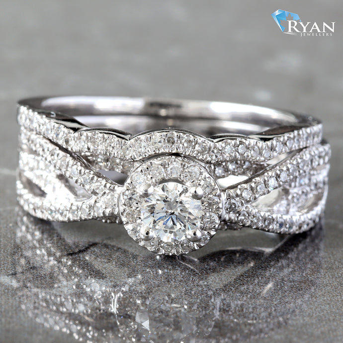 0.62CTW Natural Round Halo Criss Cross Diamond Bridal Set Ring