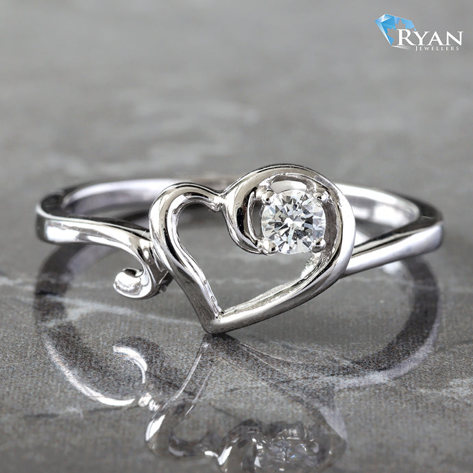 0.015CTW Dainty Heart Center W/ Soft Chevron Shoulder Ring