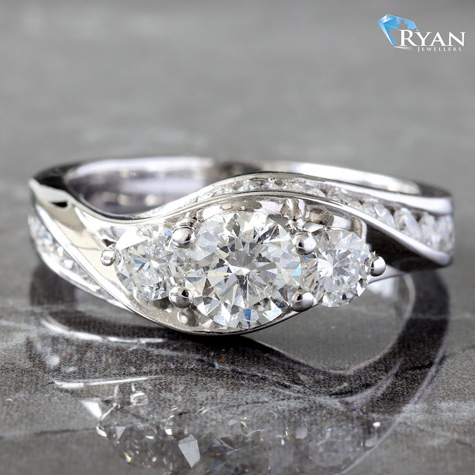 1.50CTW Three Stone Round Wrap Around Channel Set Ring
