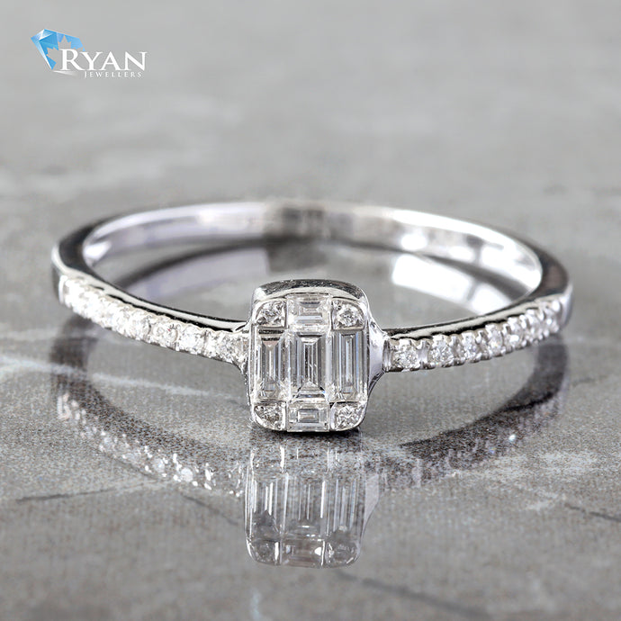 0.20CTW Natural Rectangular Baguette & Round Cut Ring
