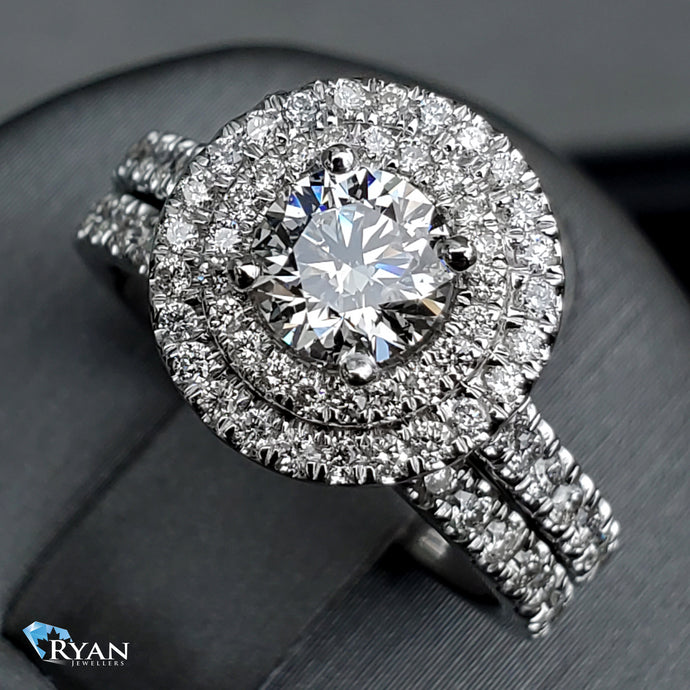 1.50CTW Natural Round Solitaire Double Halo with Pave Set Shoulder Ring