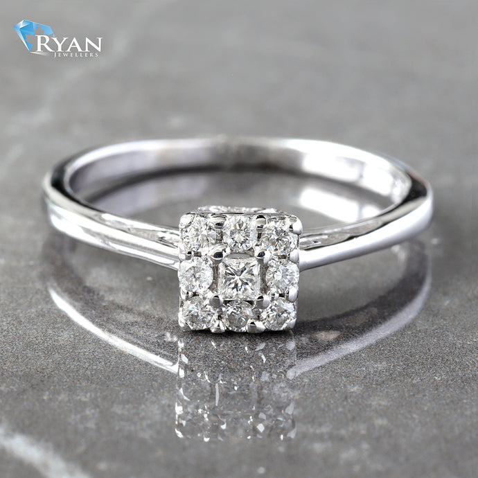 RING 14K GW 0.26CTW PRINCESS CENTER ROUND CUT SQUARE HALO HP SHOULDERS