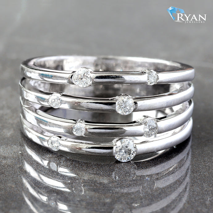 RING GW 10K 0.25CTW FOUR ROW OPEN BAND COSMO SETTING