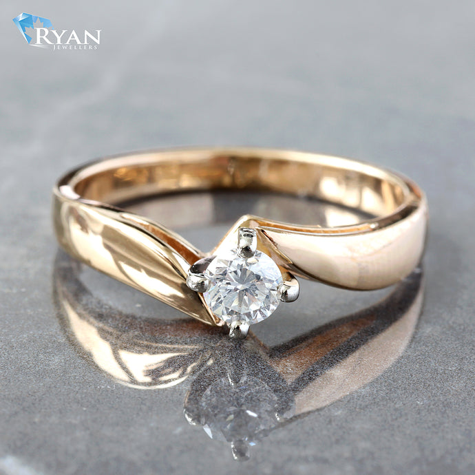 RING GY 14K 0.20CT SOLITAIRE FOUR PRONG SETTING HIGH POLISHED WAVE SHAPED CROSS OVER DESIGN
