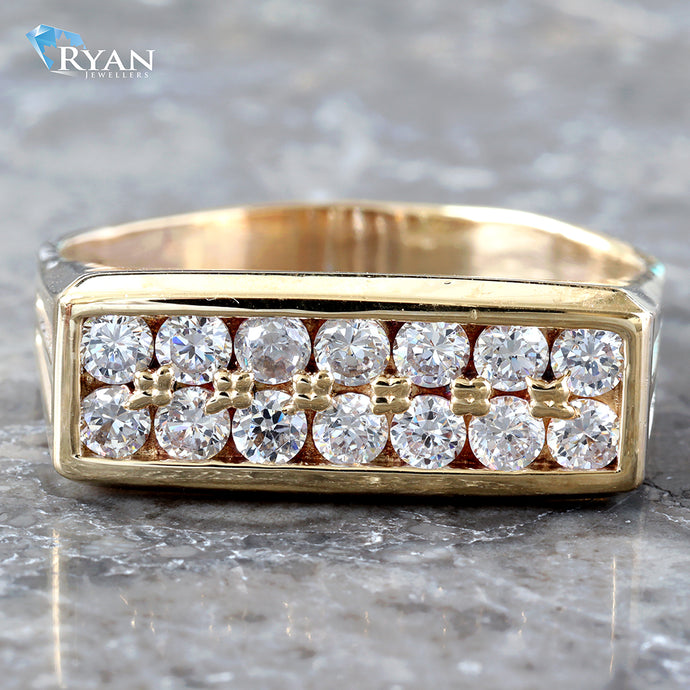 Large Diamond Cut Nugget with Cubic Zirconia Two Finger Men's Ring