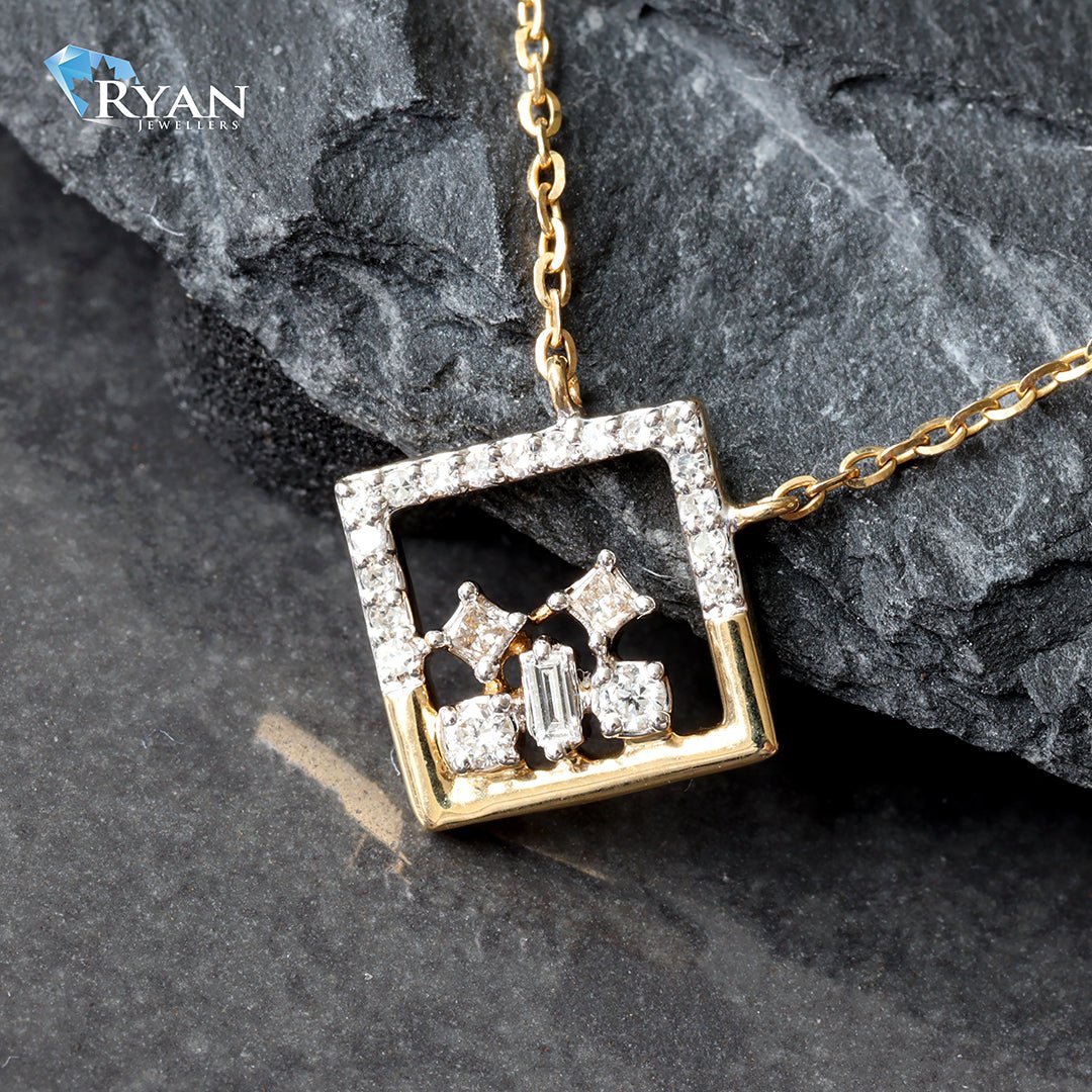 0.10CTW LAB Open Diamond Shape Half Pave Pendant With 6 Diamond Mosaic Center