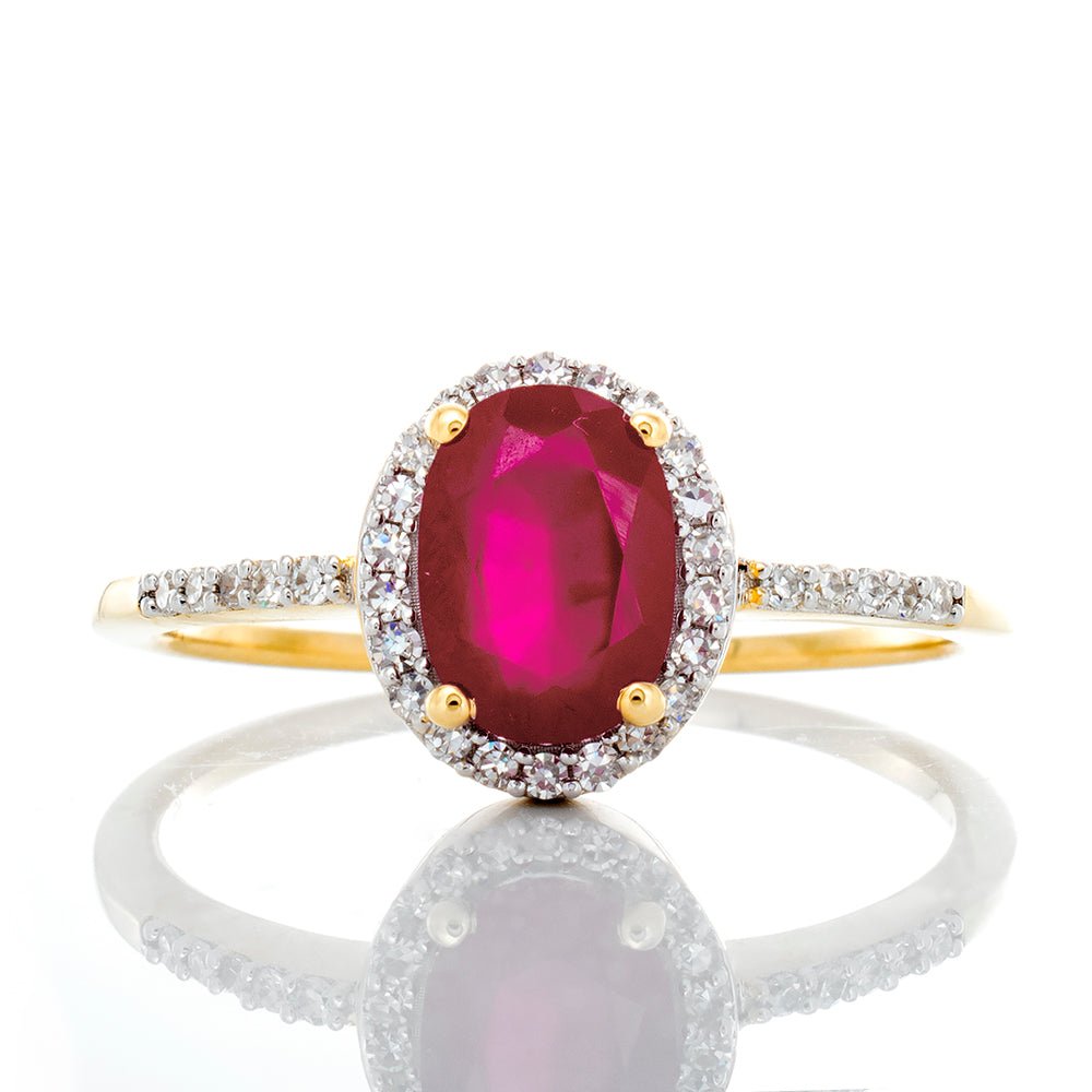 0.12ctw Oval Ruby with Pave Halo and Shoulders Diamond