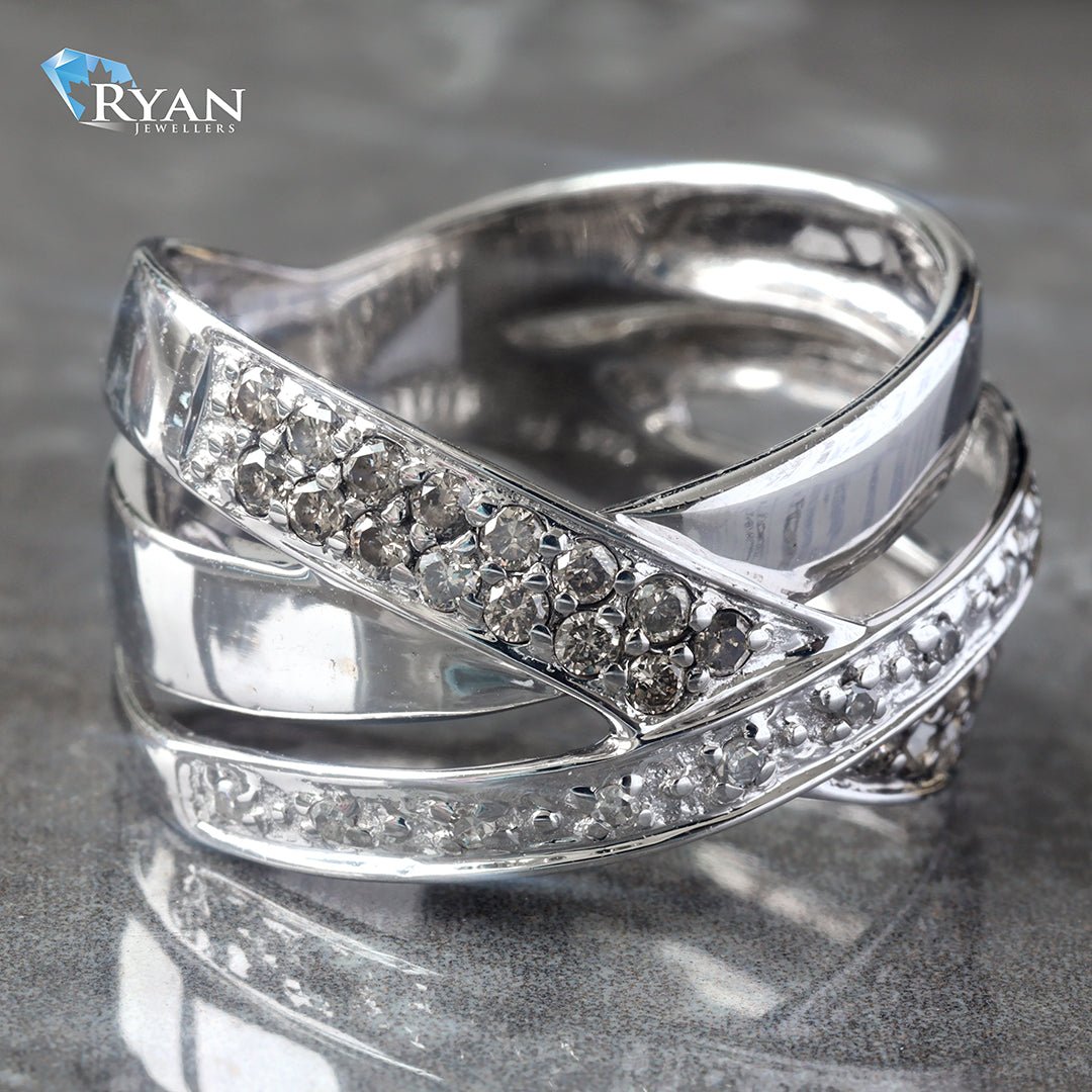 0.35CTW Natural 3 Row Cross Over 2 Row Pave, 1 Row High Polish Band quantity