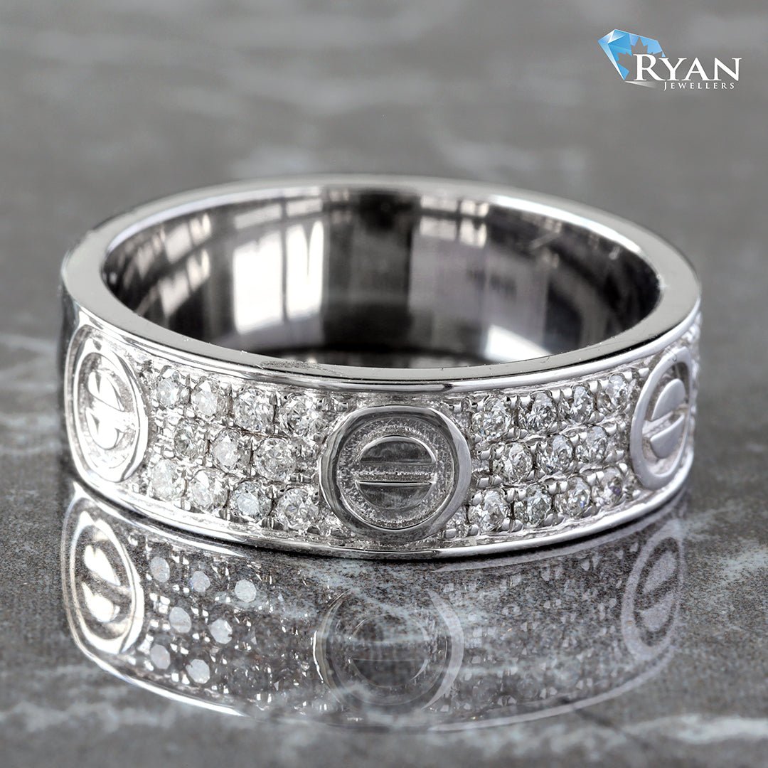 Three Row Screw Inspired Half Eternity Earth Mined Diamond Band