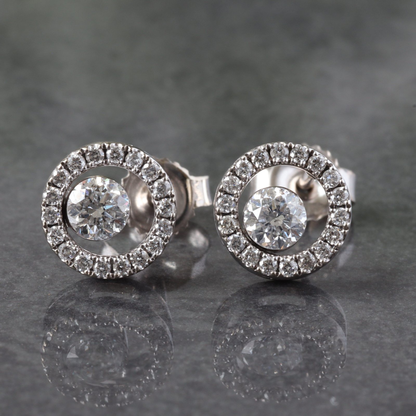 0.46ctw Floating Diamond Halo Studs 10k White Gold