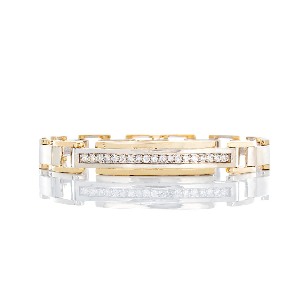 0.50ctw Diamond Channel Set Bar Two Tone Sectional Square Link Bracelet 14k Gold