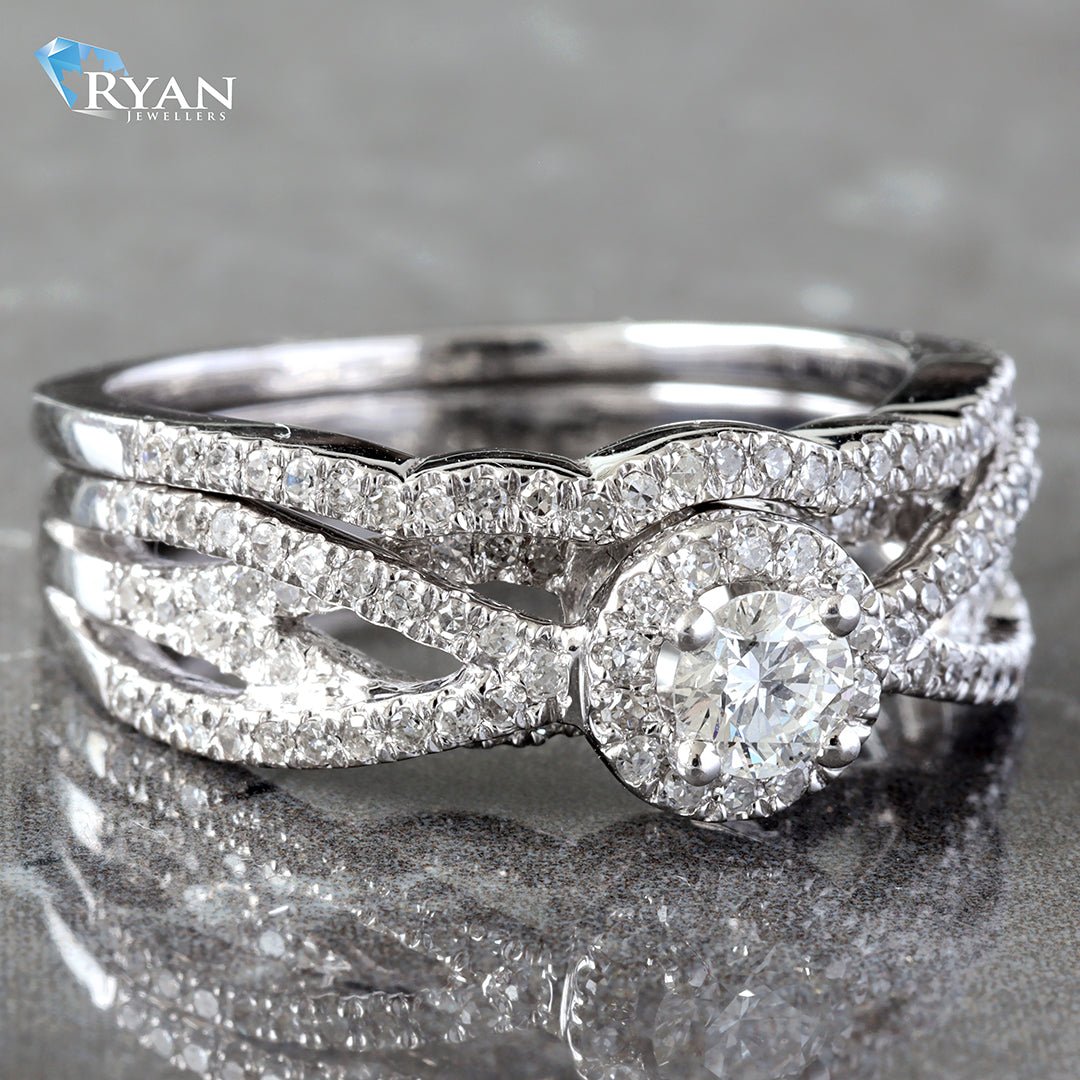 0.62CTW Natural Round Halo Criss Cross Diamond Bridal Set Ring