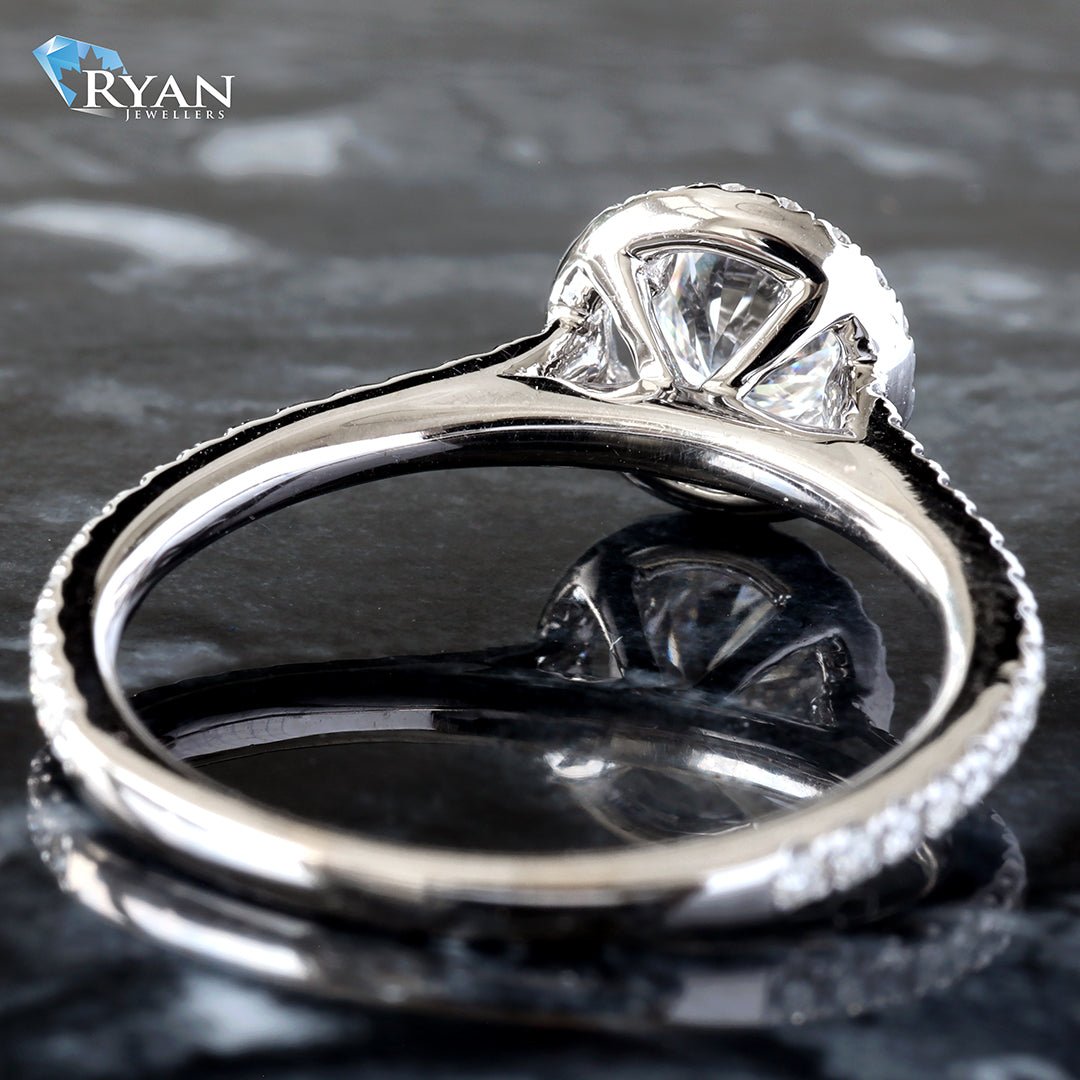 0.77CTW Round Lab Grown Center with Natural Round Diamond Halo and Sides 18K Ring
