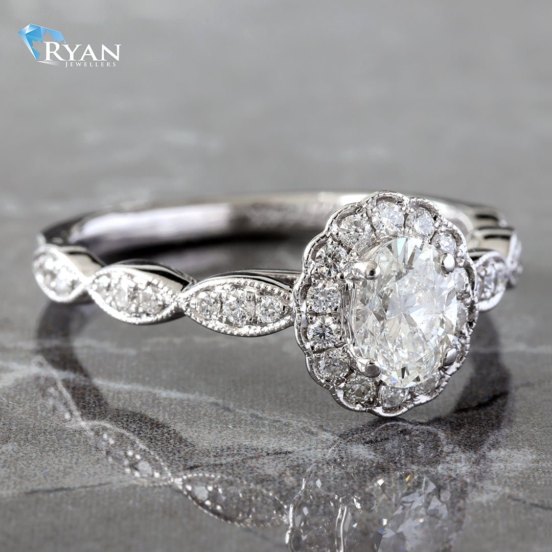 0.78CTW Vintage Oval Center with Halo Engagement Ring