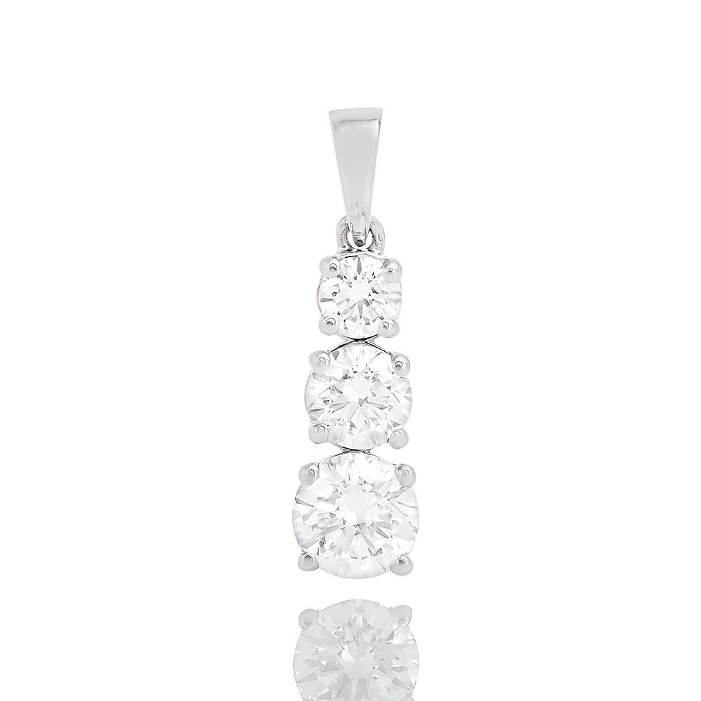 1.00ctw Lab Diamond Round Solitaire Three Stone Graduated Drop Pendant