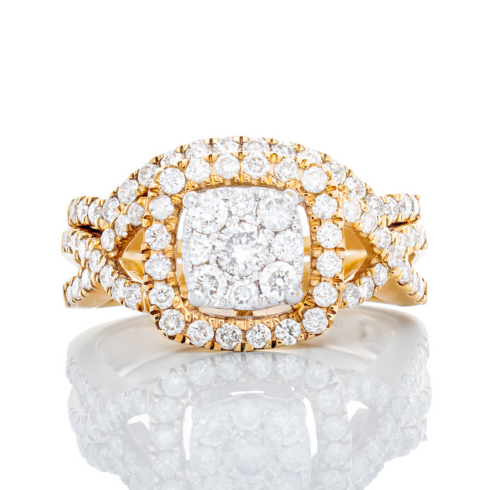 1.00CTW Natural Imperial Center Cushion Halo with Infinity Shoulders Bridal Set