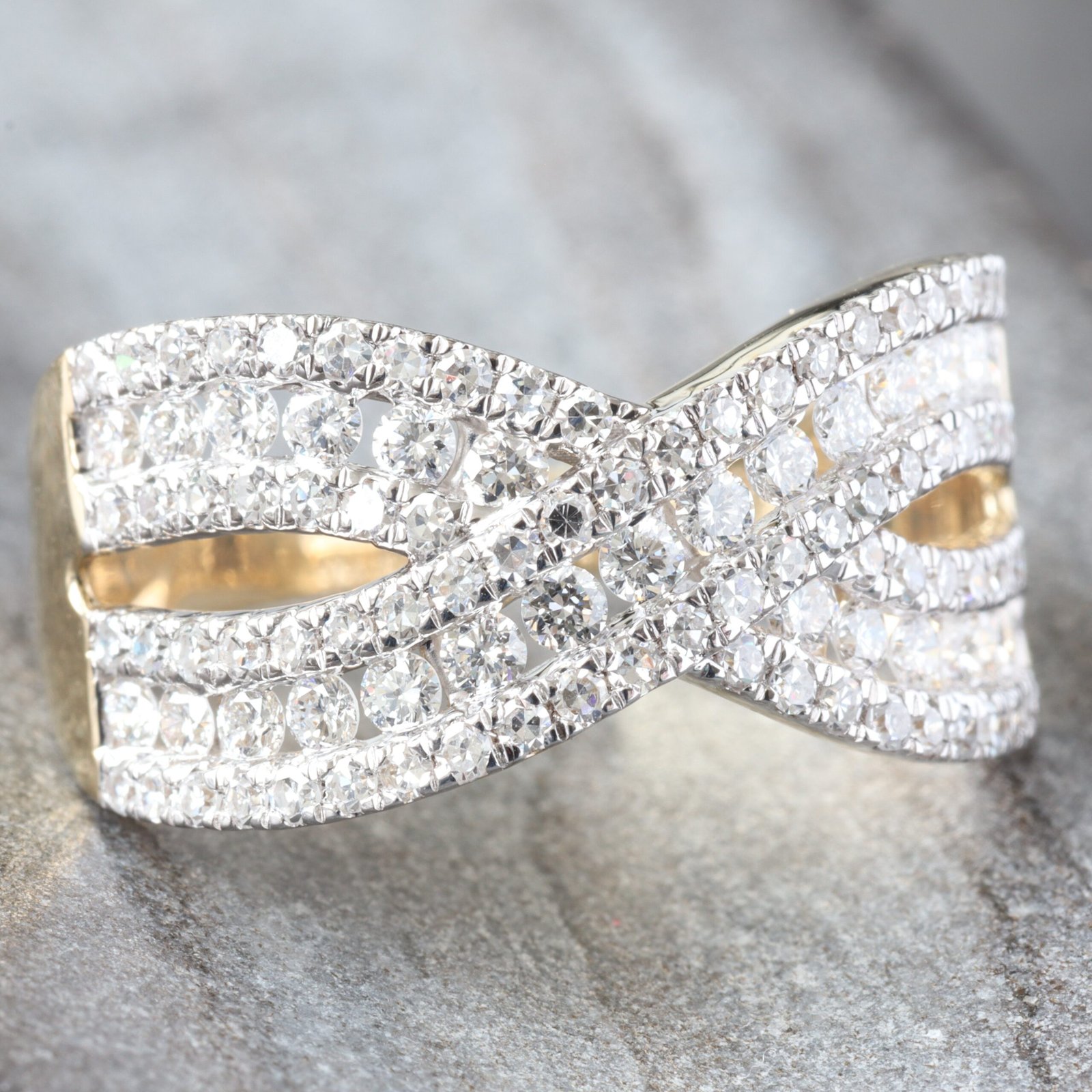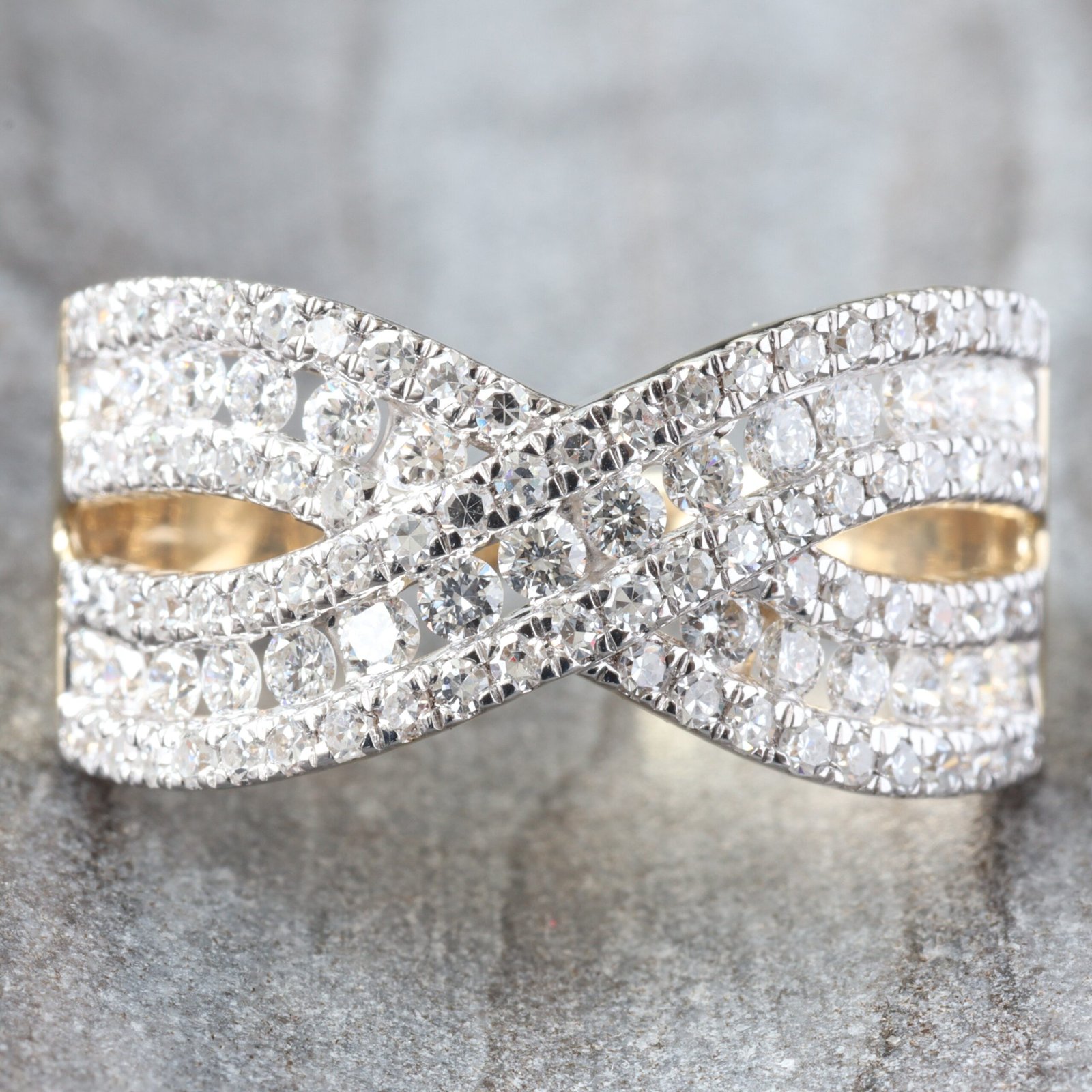 1.00ctw Pave Round Diamond Cross Over Band quantity