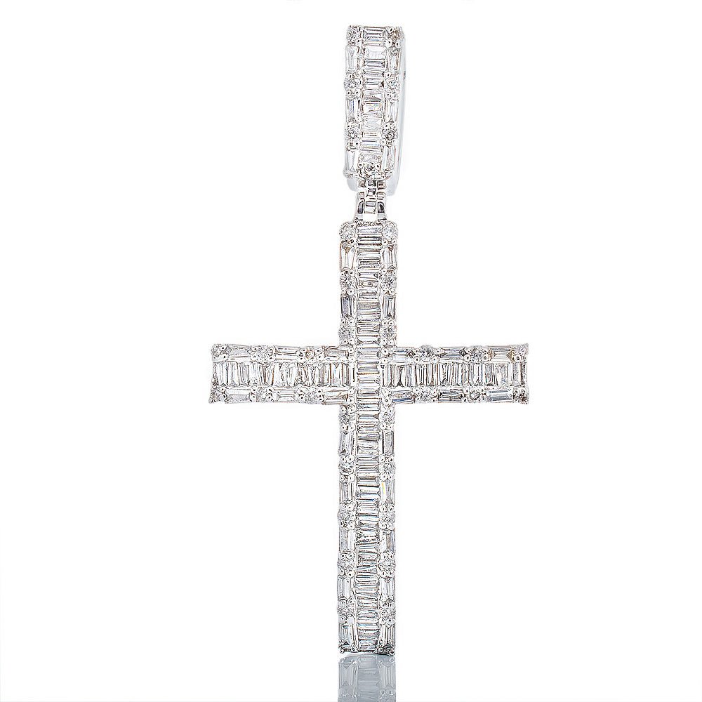 1.05ctw Diamond Cross Chanel Set Baguette Center Pendant