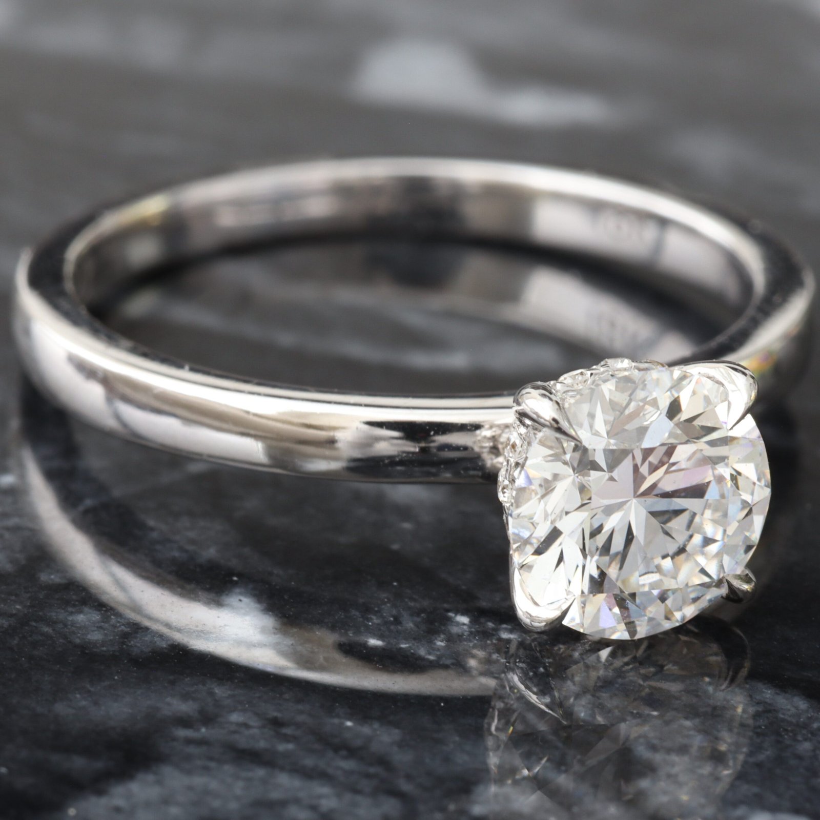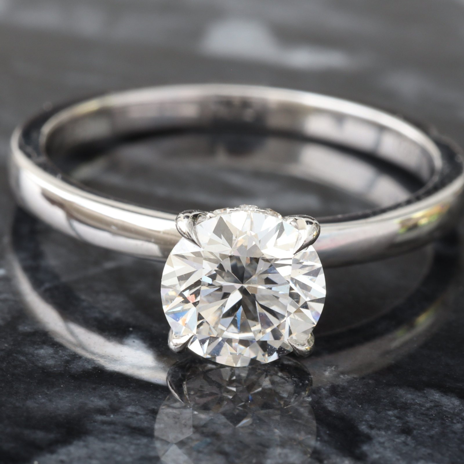 1.12ctw Round Solitaire with Hidden Halo and High Polished Flat Edge Shoulders Ring