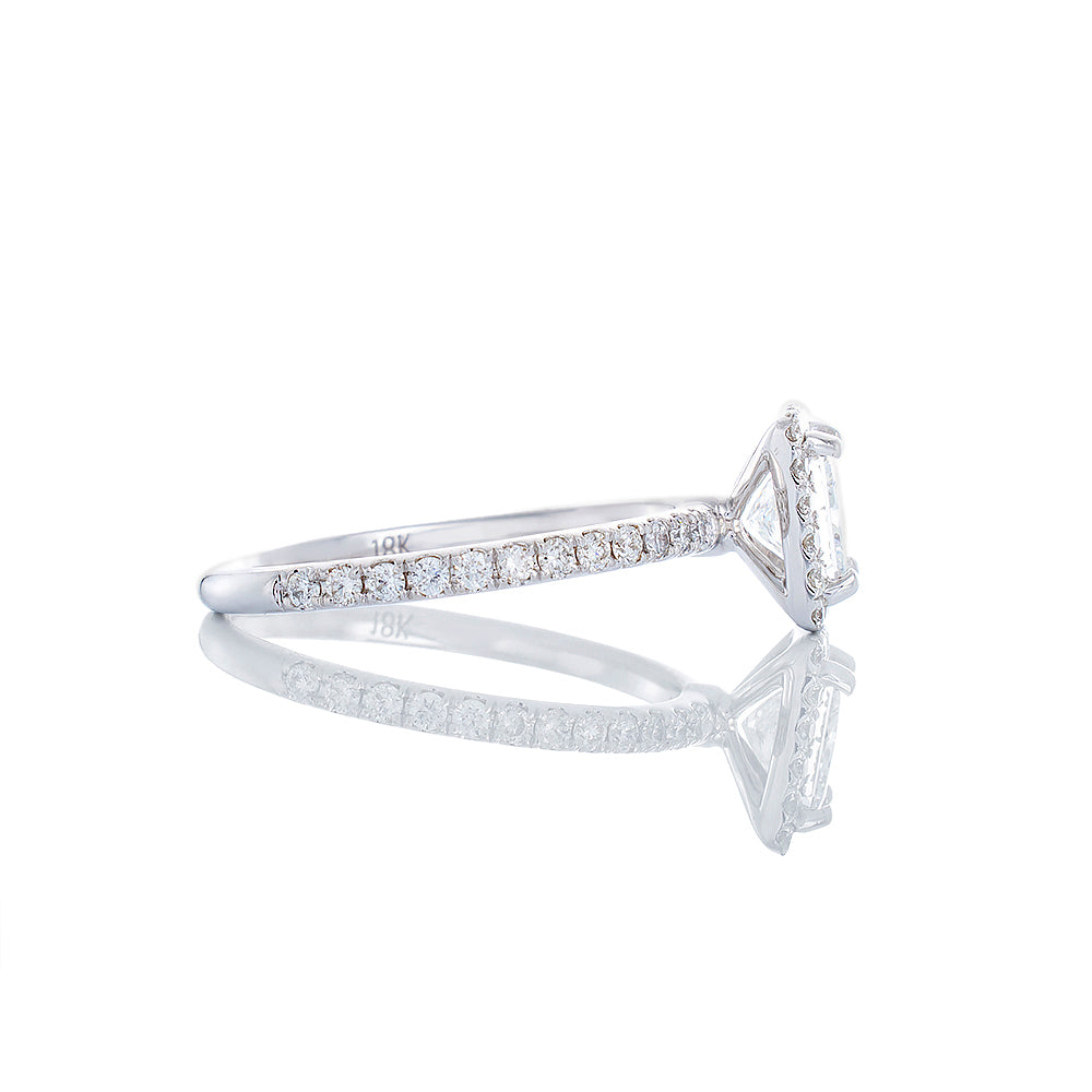 1.15ctw Princess Cut Solitaire Square Halo & Diamond Pave Shoulders 18k White Gold quantity
