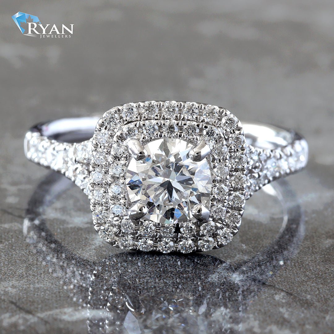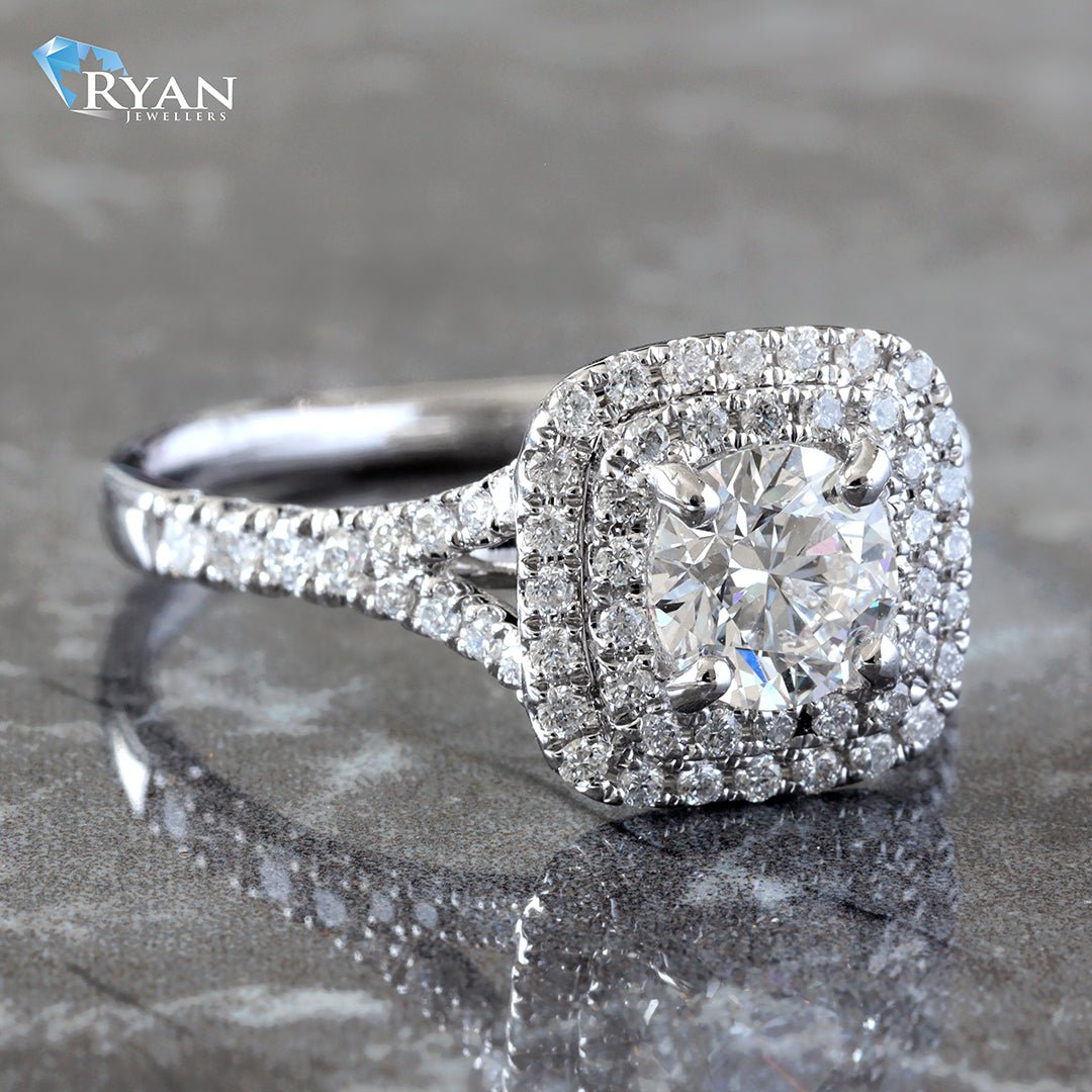 1.18CTW Round Solitaire W/ Double Cushion Halo & Split Pave Shoulders