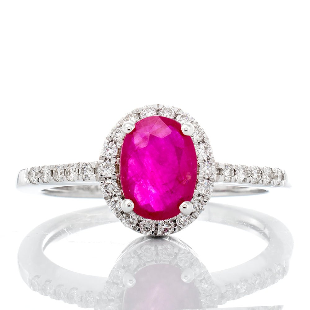1.20ctw Oval Ruby with Diamond Halo Ring