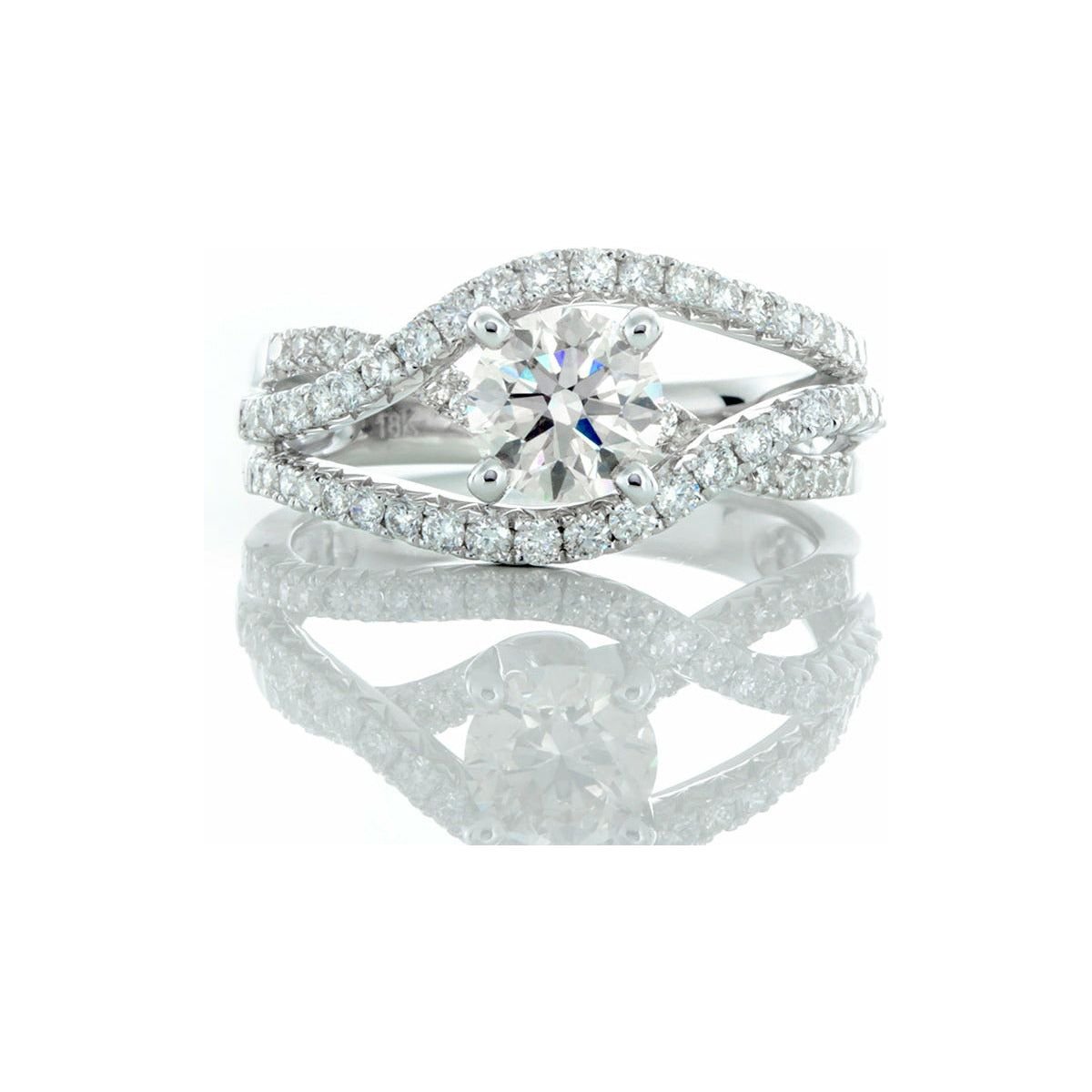 1.34CTW Natural Round Solitaire with Three Open Cross Over Wave Design Shoulder Ring
