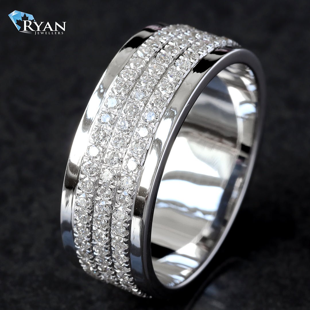 LAB Created 3 Row Pave Diamond White Gold Men’s Eternity Band