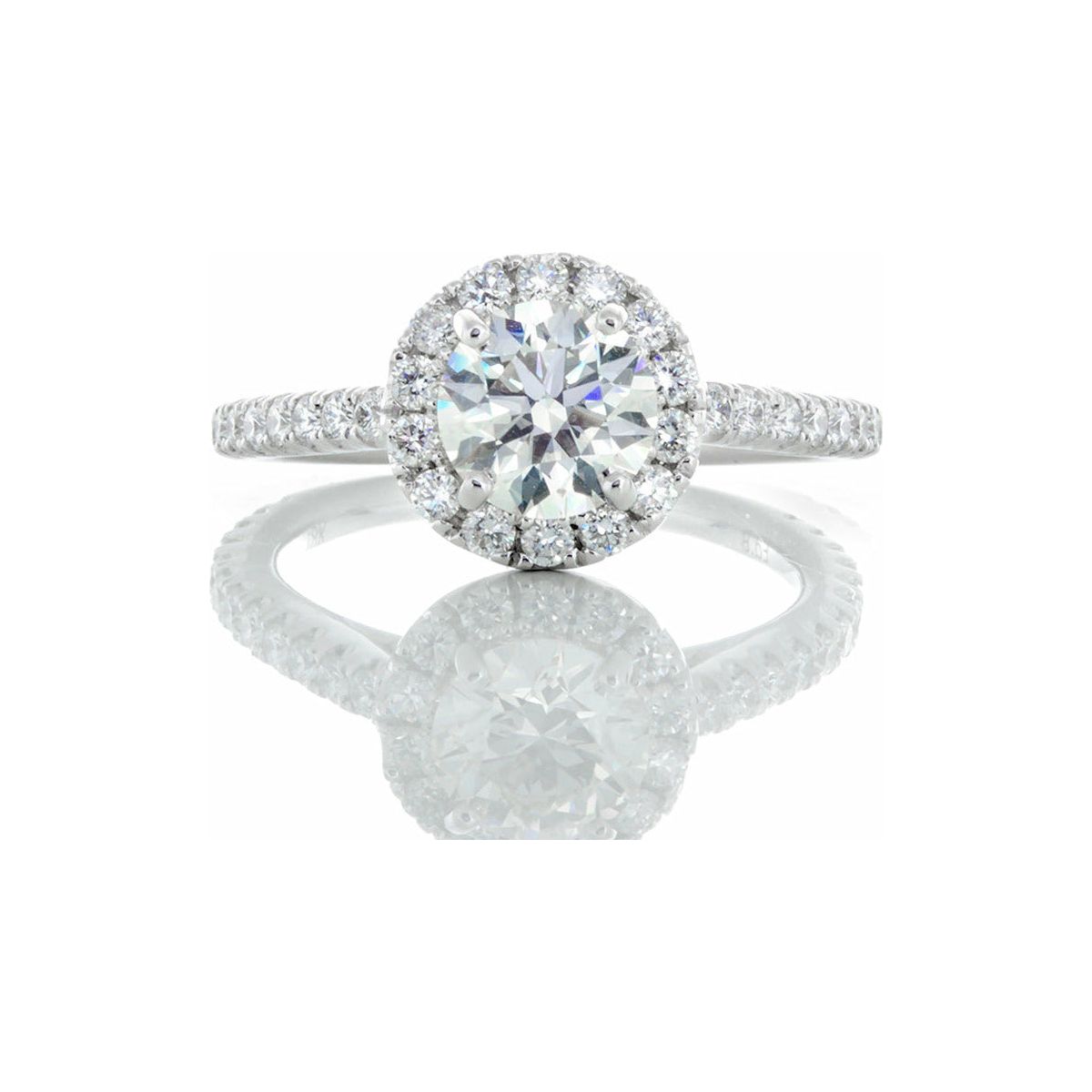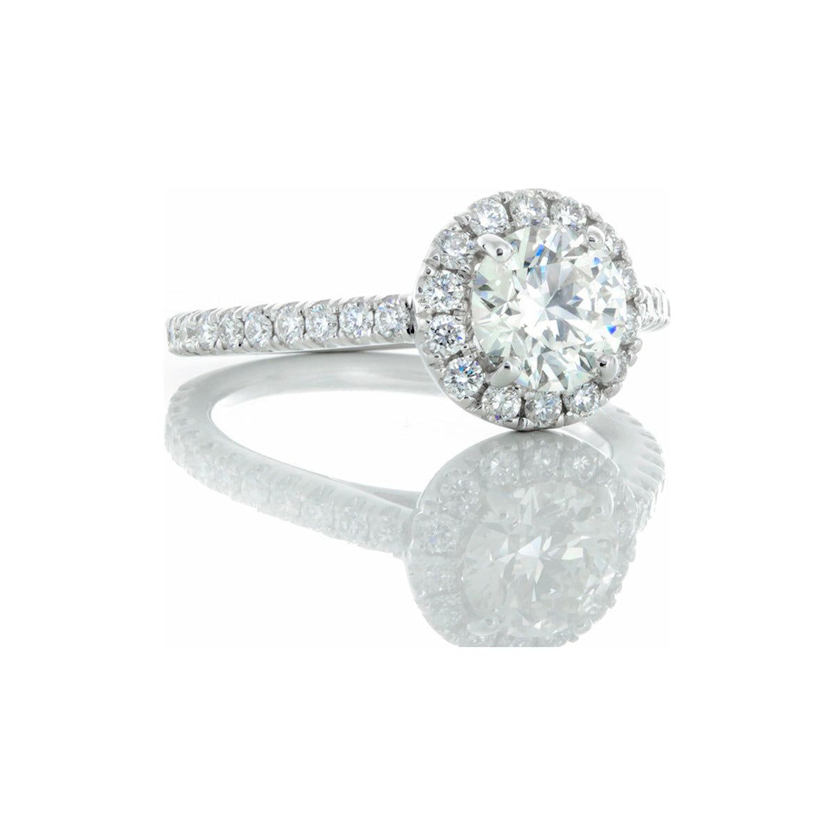 1.68CTW Natural Brilliant Cut Solitaire With Round Diamond Pave Halo & Shoulders 18k White Gold