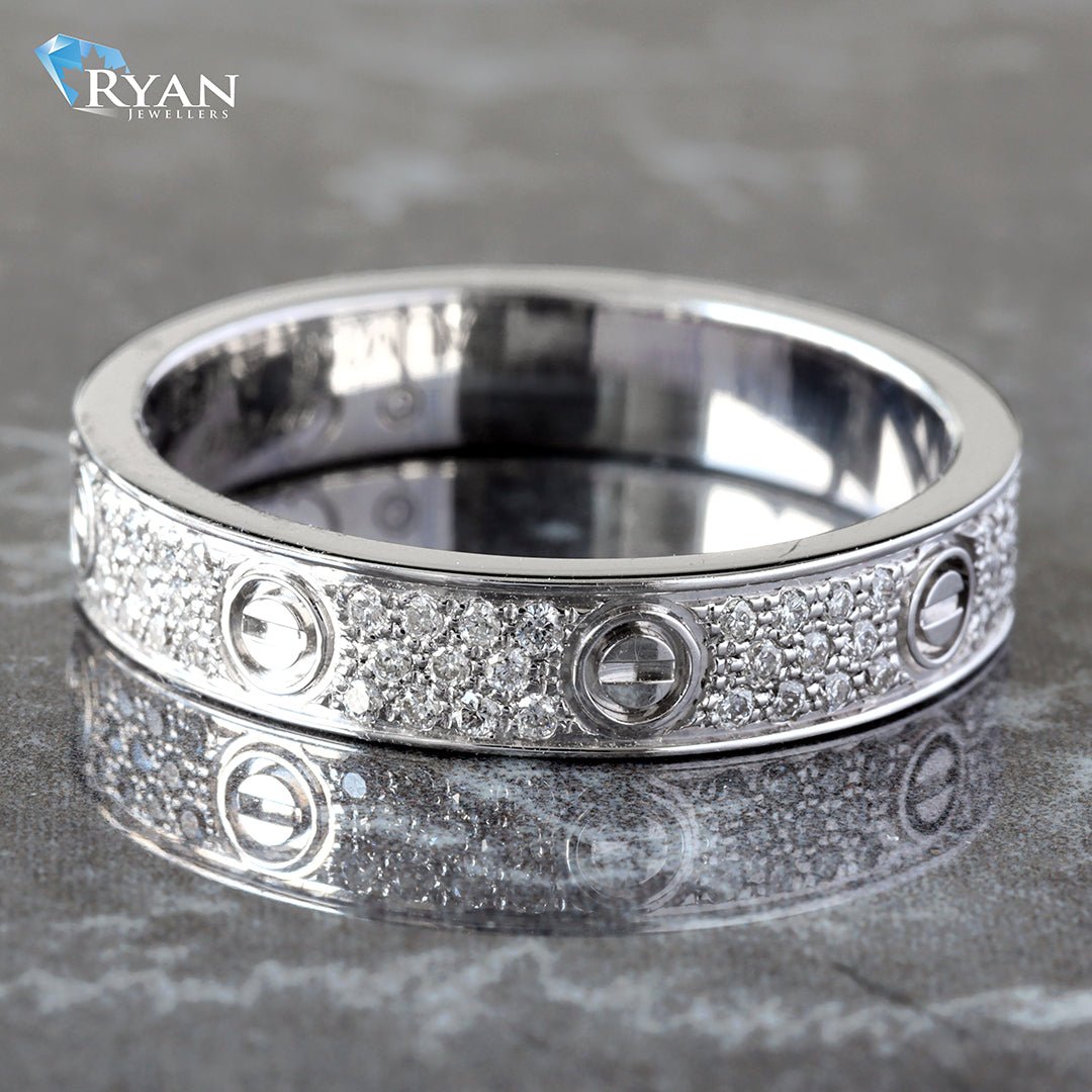Earth Mined Diamond Screw Inspired Band 18kt White Gold