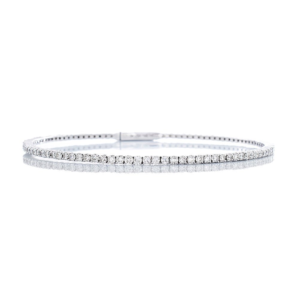 2.10ctw Four Prong Set Diamond Eternity Flexible Bangle 14k White Gold